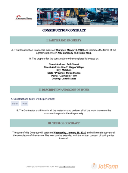 | Free Construction Contract Template |